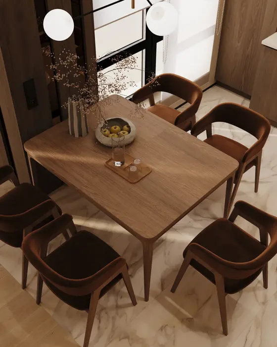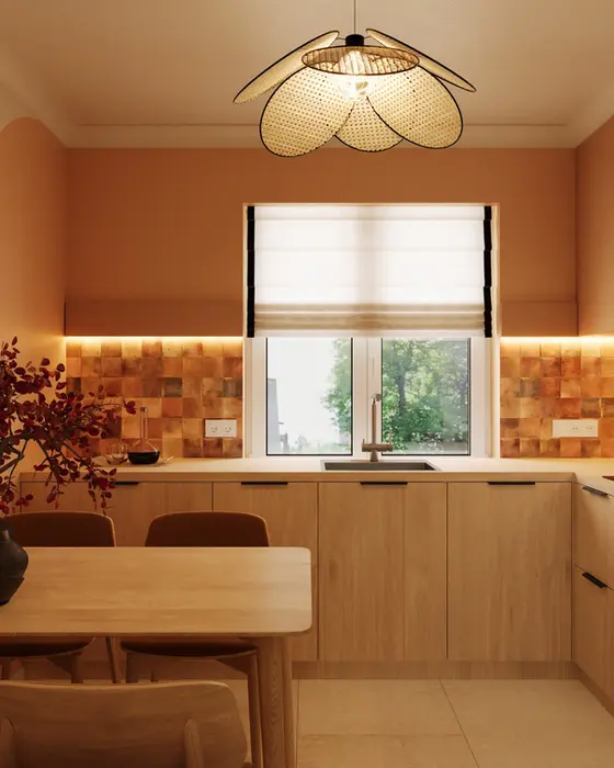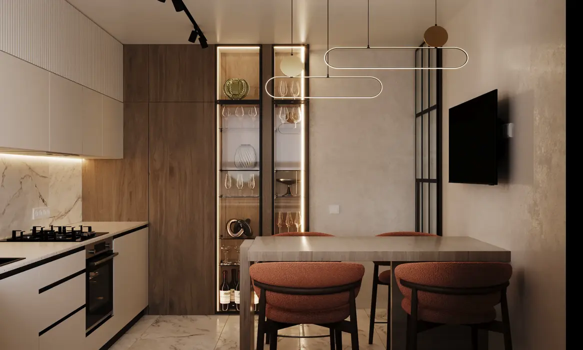 Інтер’єр створений для затишних сімейних сніданків і спокійних вечорів.