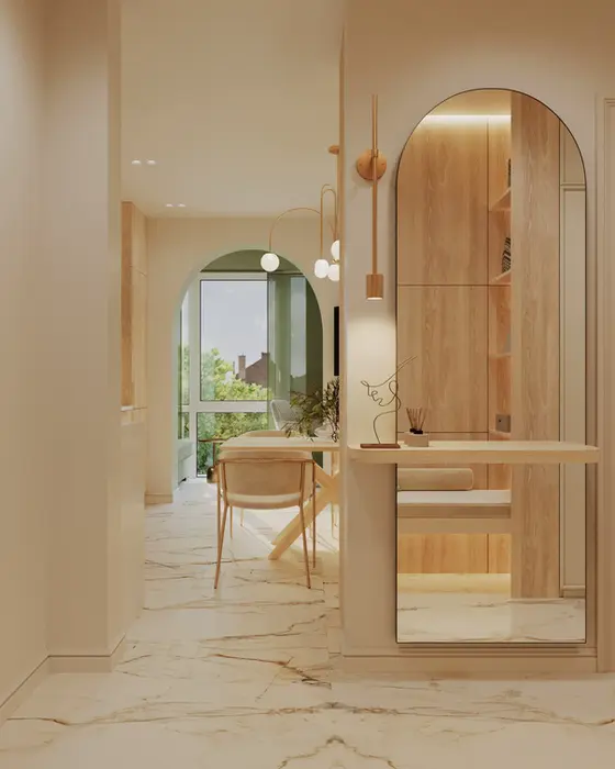 Світлий, стриманий інтер’єр із теплими акцентами золота — ця квартира створена для тих, хто цінує спокій, та естетику.